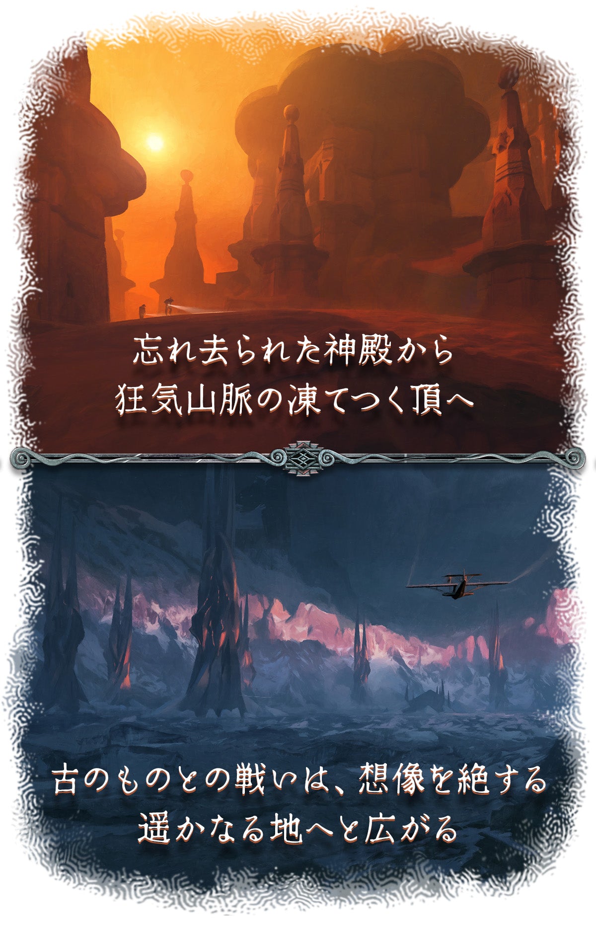 『クトゥルフ ~死もまた死すべし~』の完全新作『禁断の深域』が登場!プレイヤーは狂気とうち捨てられた神秘に満ちた神話の未踏領域へと足を踏み入れることになります。新たな探索者、エピソード、古のもの、モンスターに加え、あらゆるエピソードと古のものでプレイできる三幕構成のキャンペーンモードが新たに導入され、毎回異なる物語が展開します。